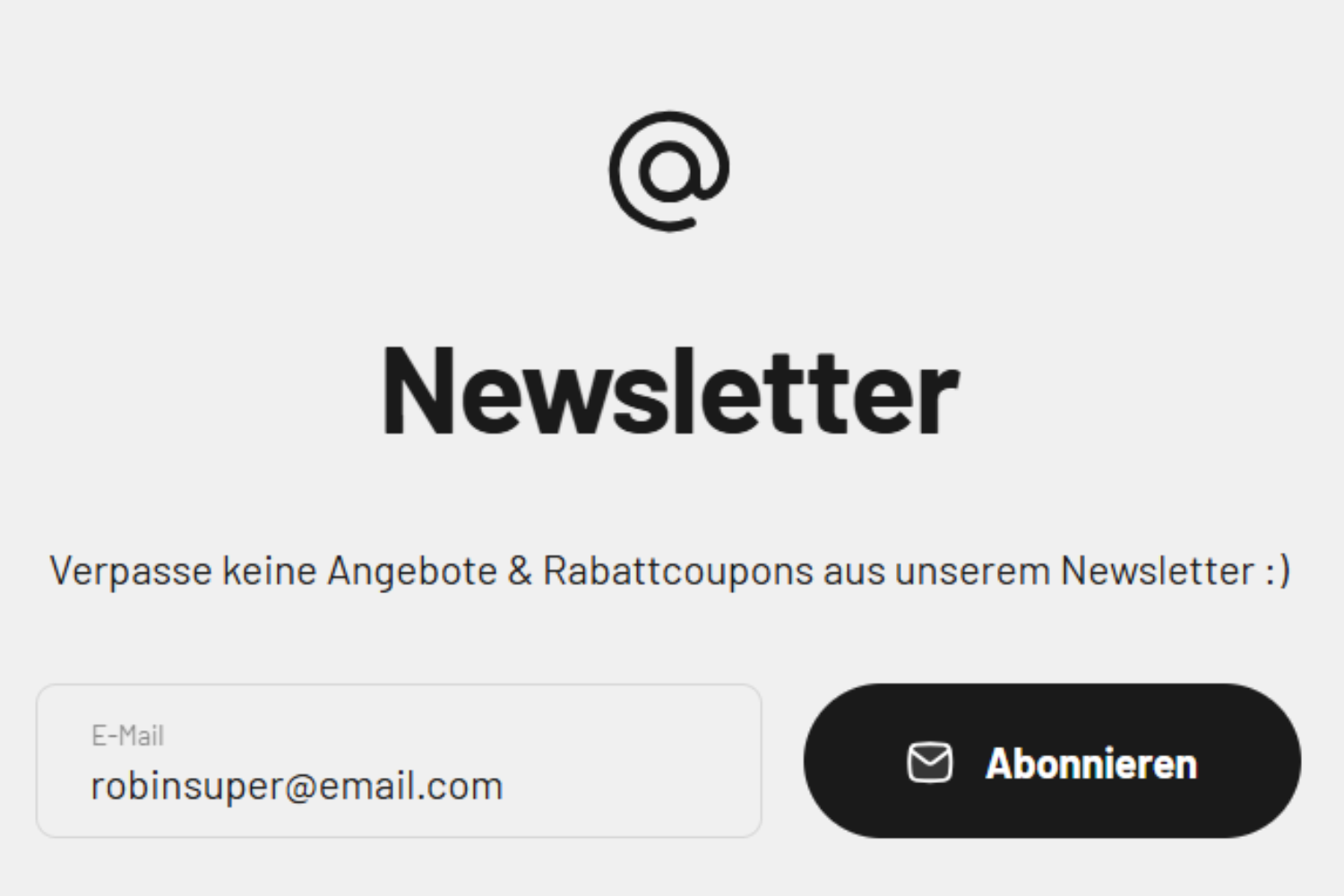 Beim Betreten unserer Webseite erscheint ein Newsletter-Formular. Wenn du diesen abonnierst erhältst du nach der Bestätigung deinen gewählten Rabatt per E-Mail.